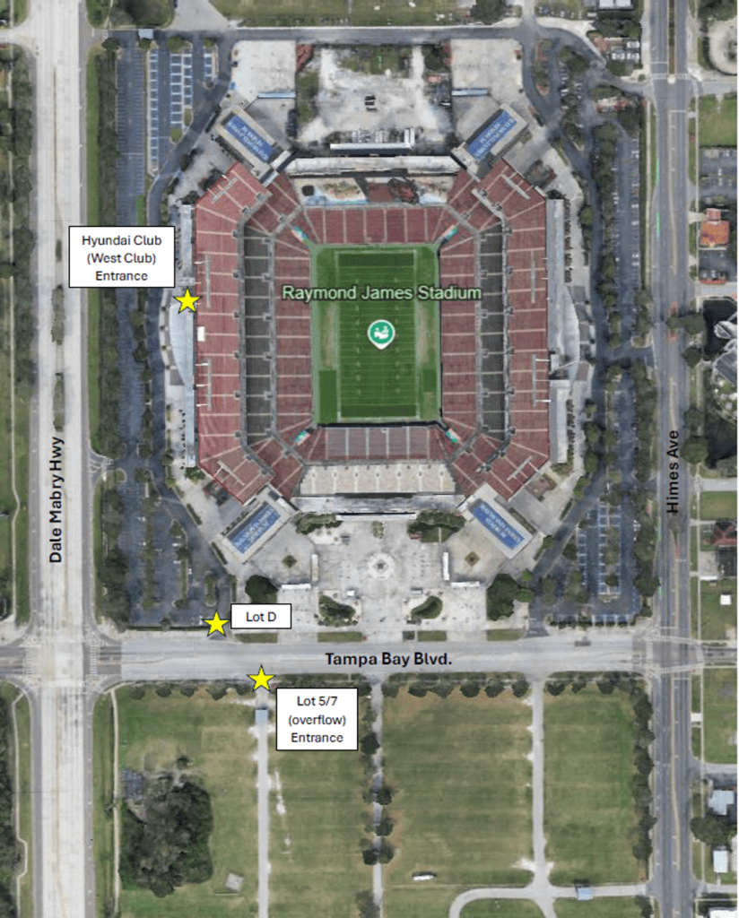 Important location change! This year’s event will still be held at Raymond James Stadium, but we are moving from the East Club to the West Club. Please plan accordingly.
